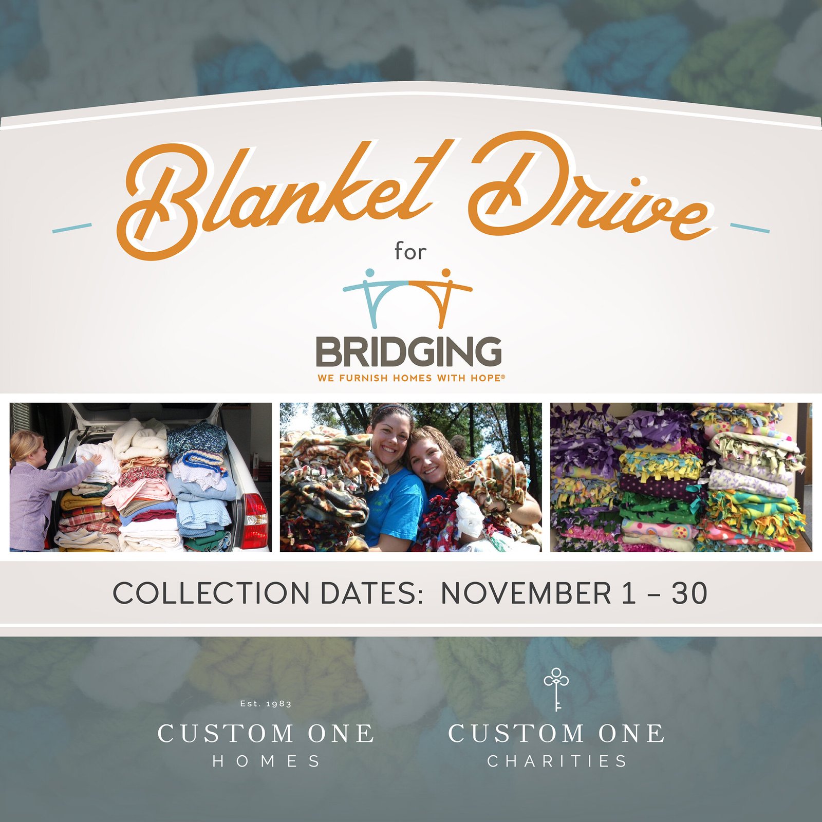 In November, Custom One Homes /Custom One Charities took part in a blanket drive hosted by Bridging to collect new