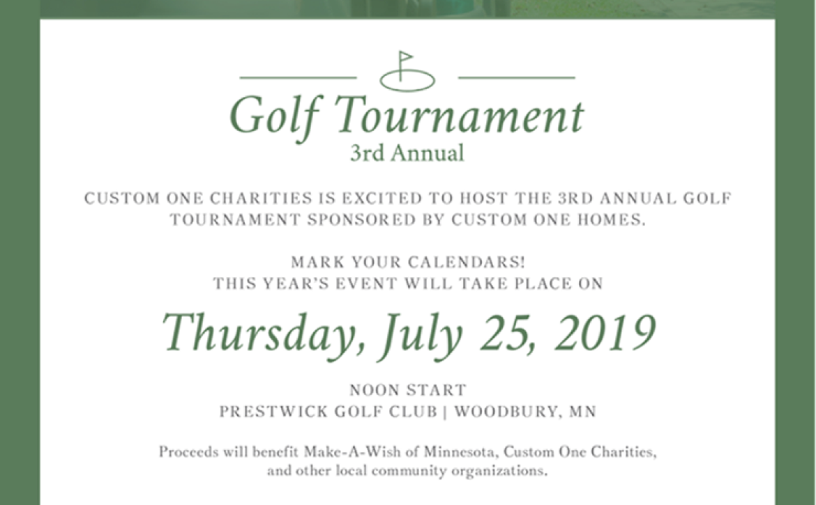 Save the Date for Custom One Homes Make a Wish Golf Tournament