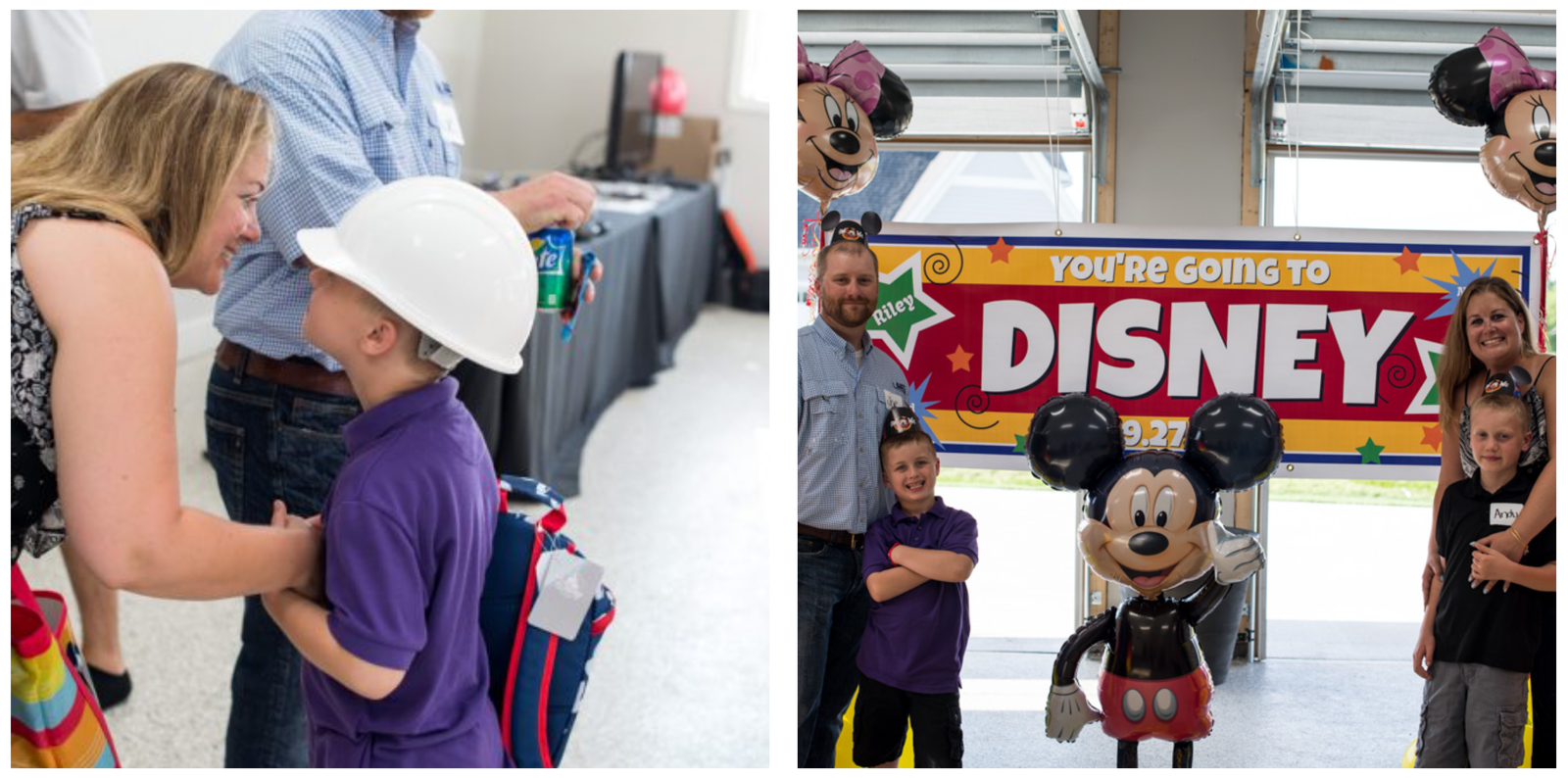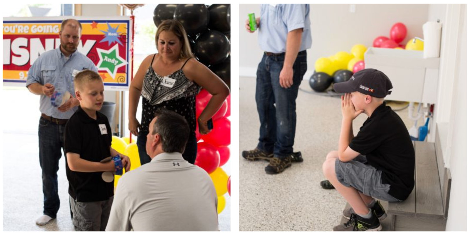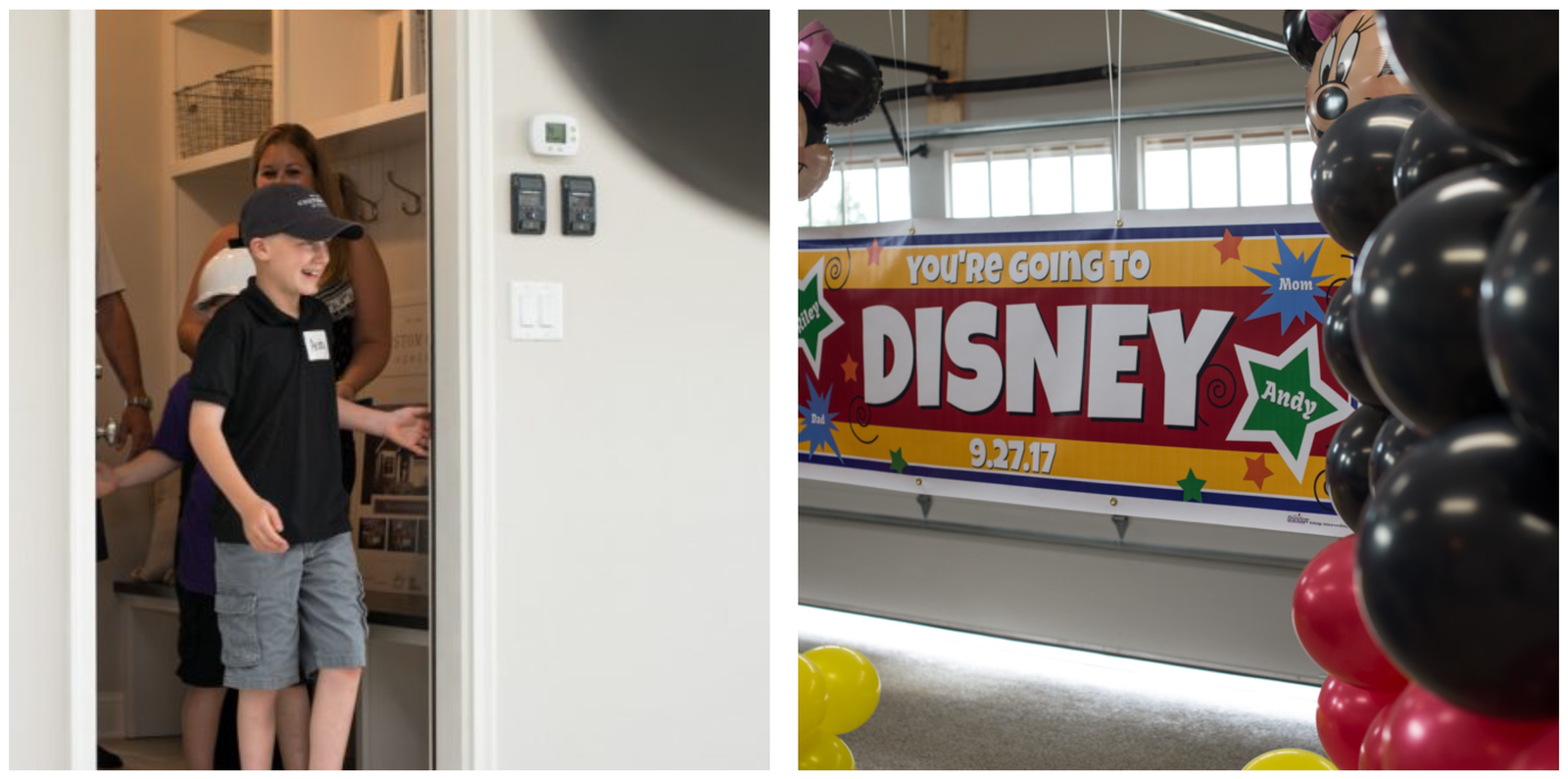 In cahoots with his parents and under the guise of looking at his mom’s latest work project, Custom One’s owner, Todd, recently gave Andy and his family a tour of our Luxury Home. However, instead of just getting a glimpse of the home’s garage, the excursion ended with an exciting surprise: they’re heading to Disney World! Andy is growing up with a rare, but thankfully treatable, heart disease. Although his Shone’s Complex does require careful monitoring, Andy’s parents are still determined to provide him with everyday childhood experiences.