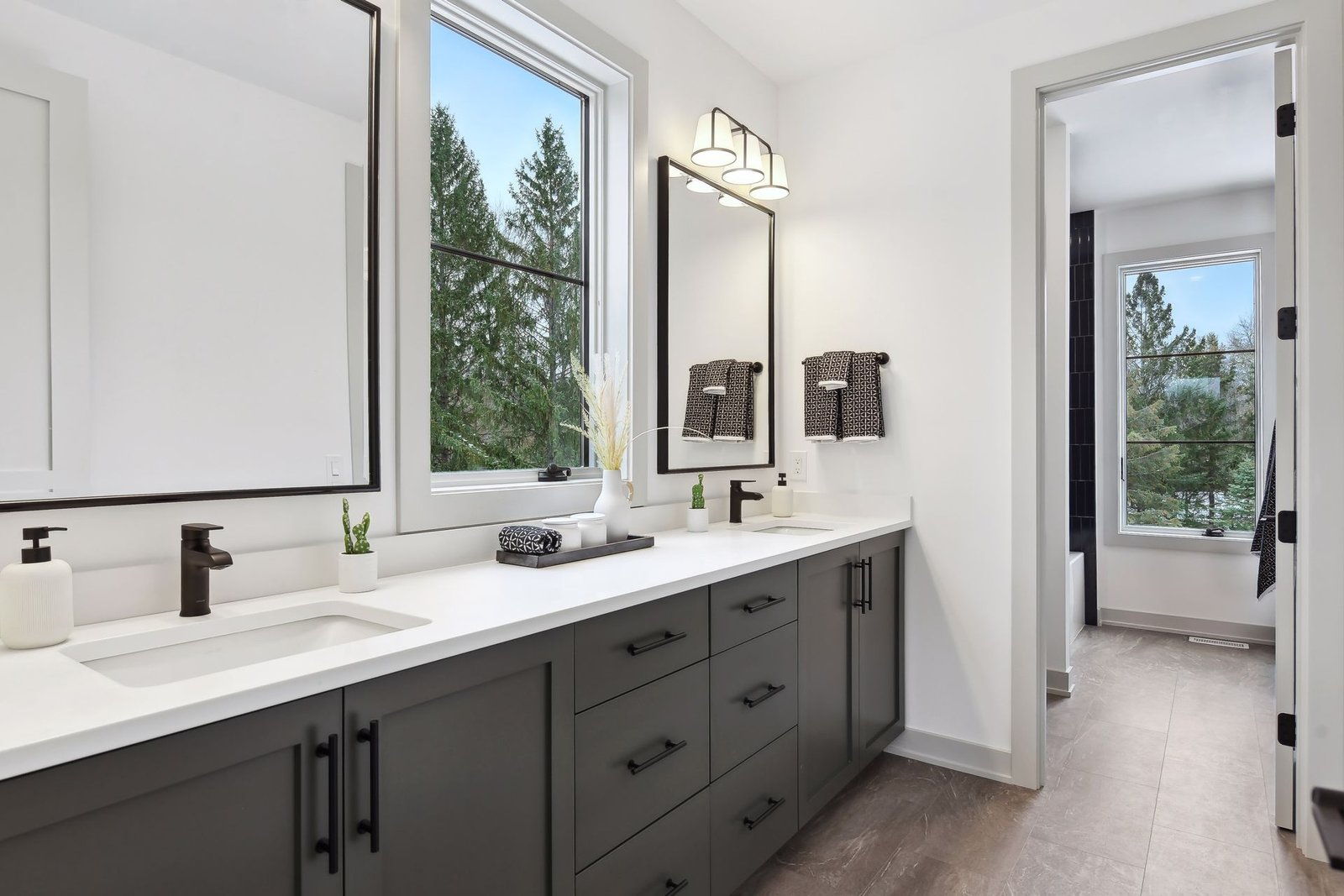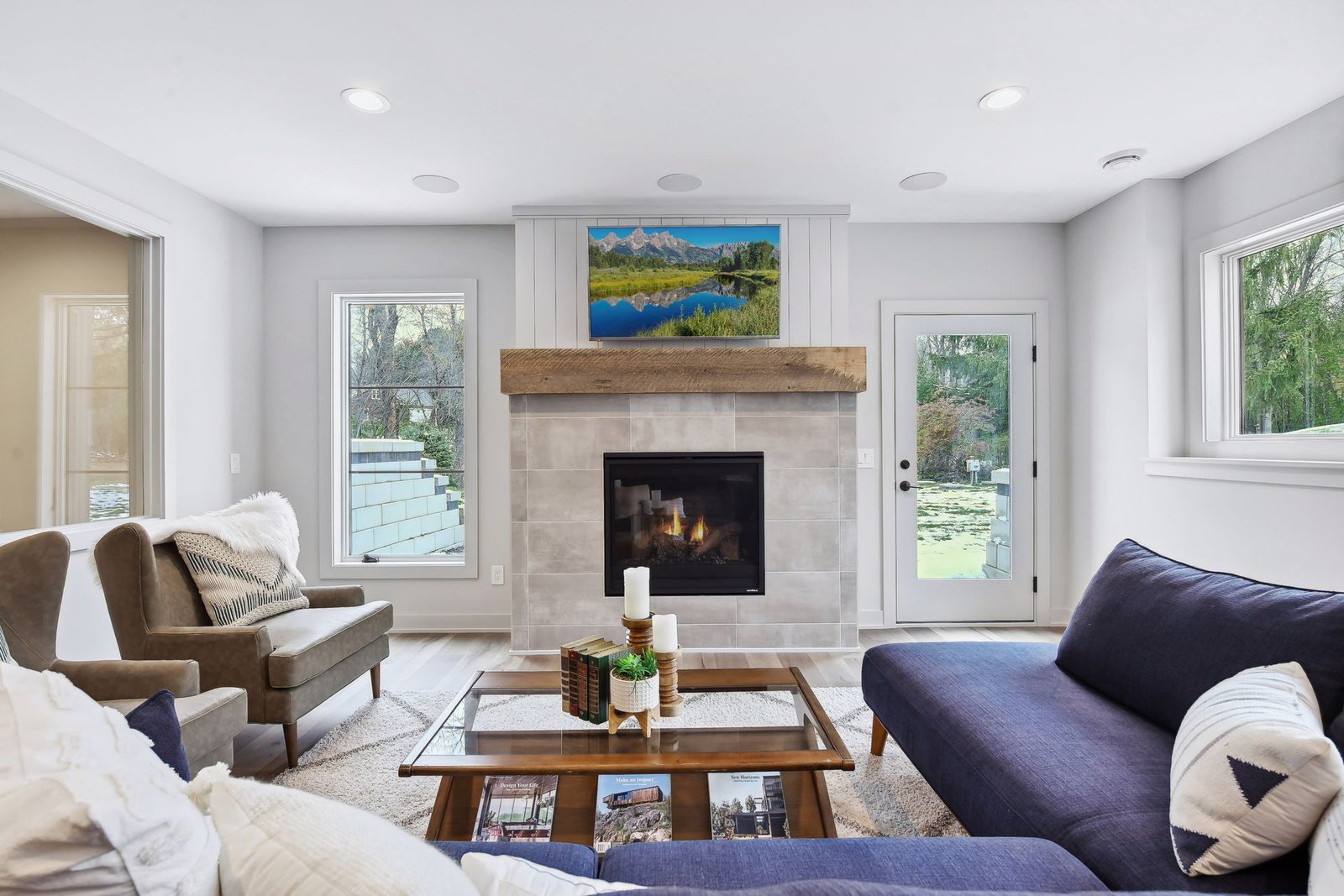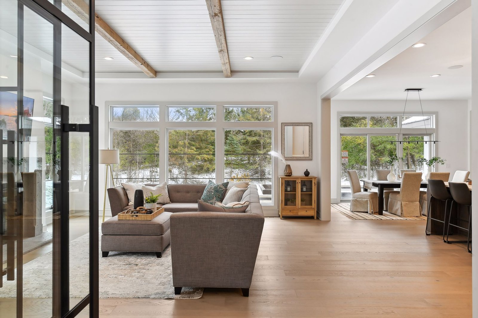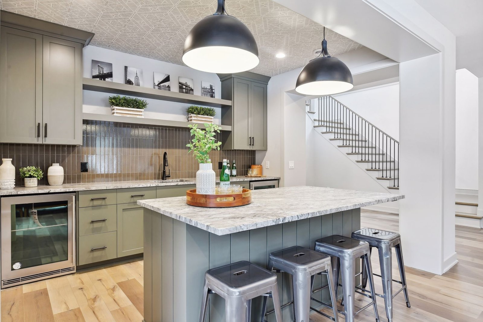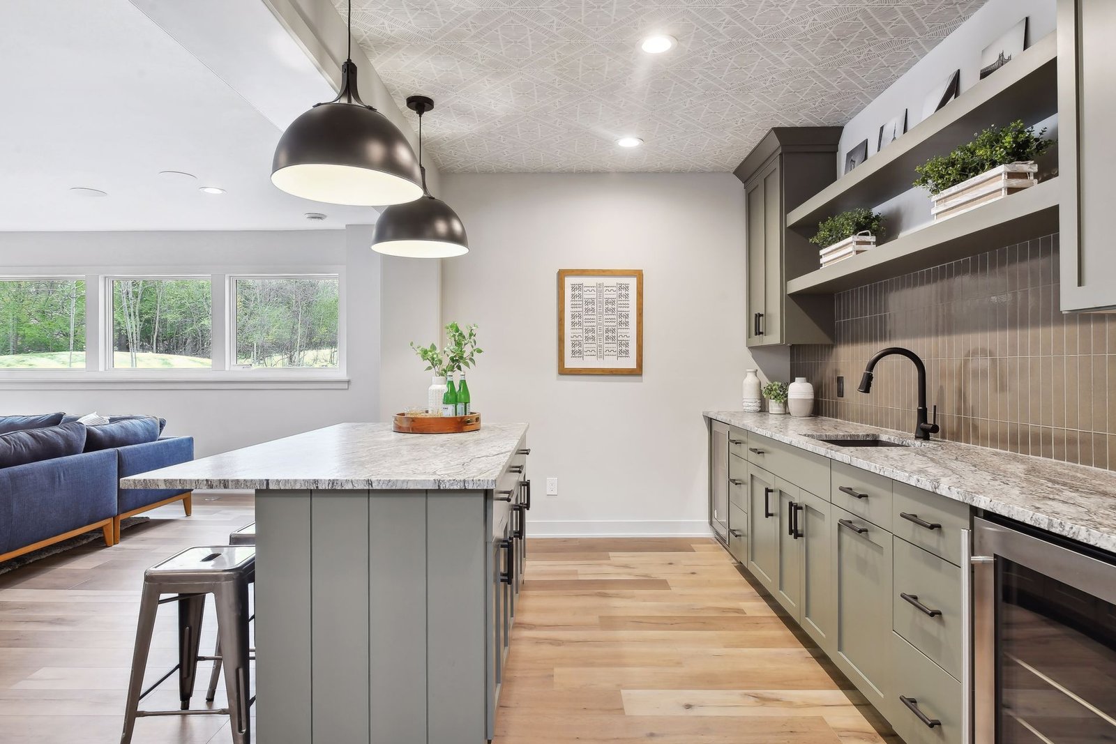 The lower level includes a bar area and a guest room with an en-suite bathroom, ensuring comfort and privacy for visitors. Additionally, there is a dedicated workout space and a spacious lower-level family room, ideal for relaxation and family gatherings.