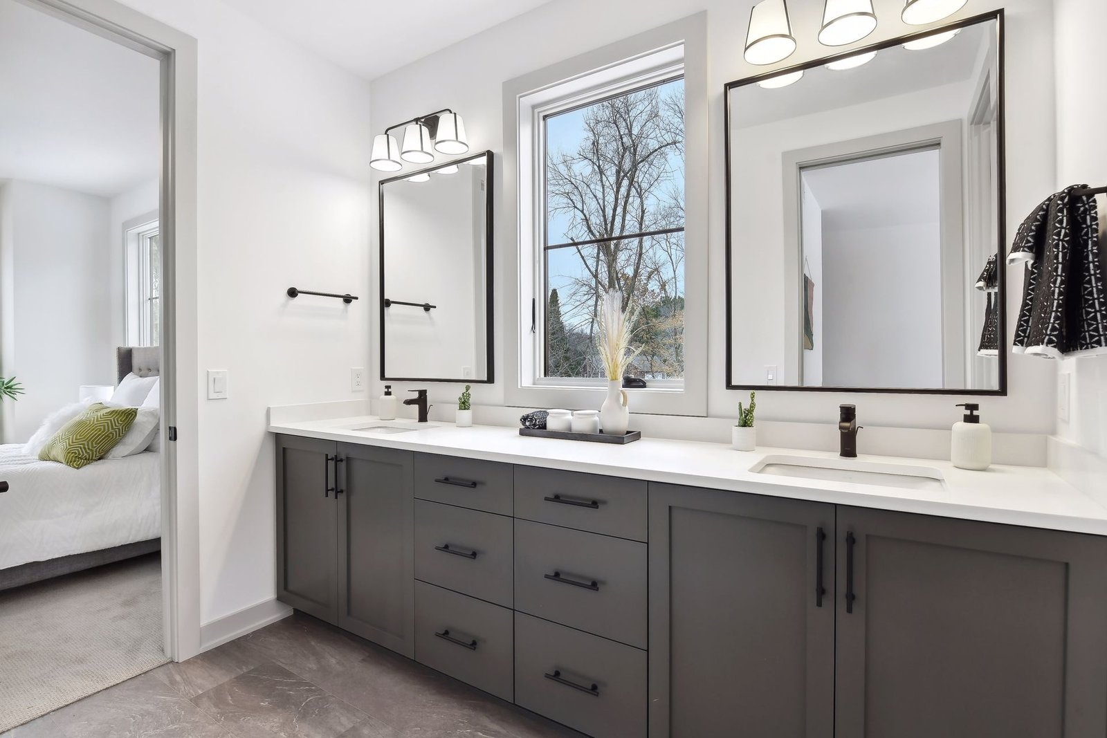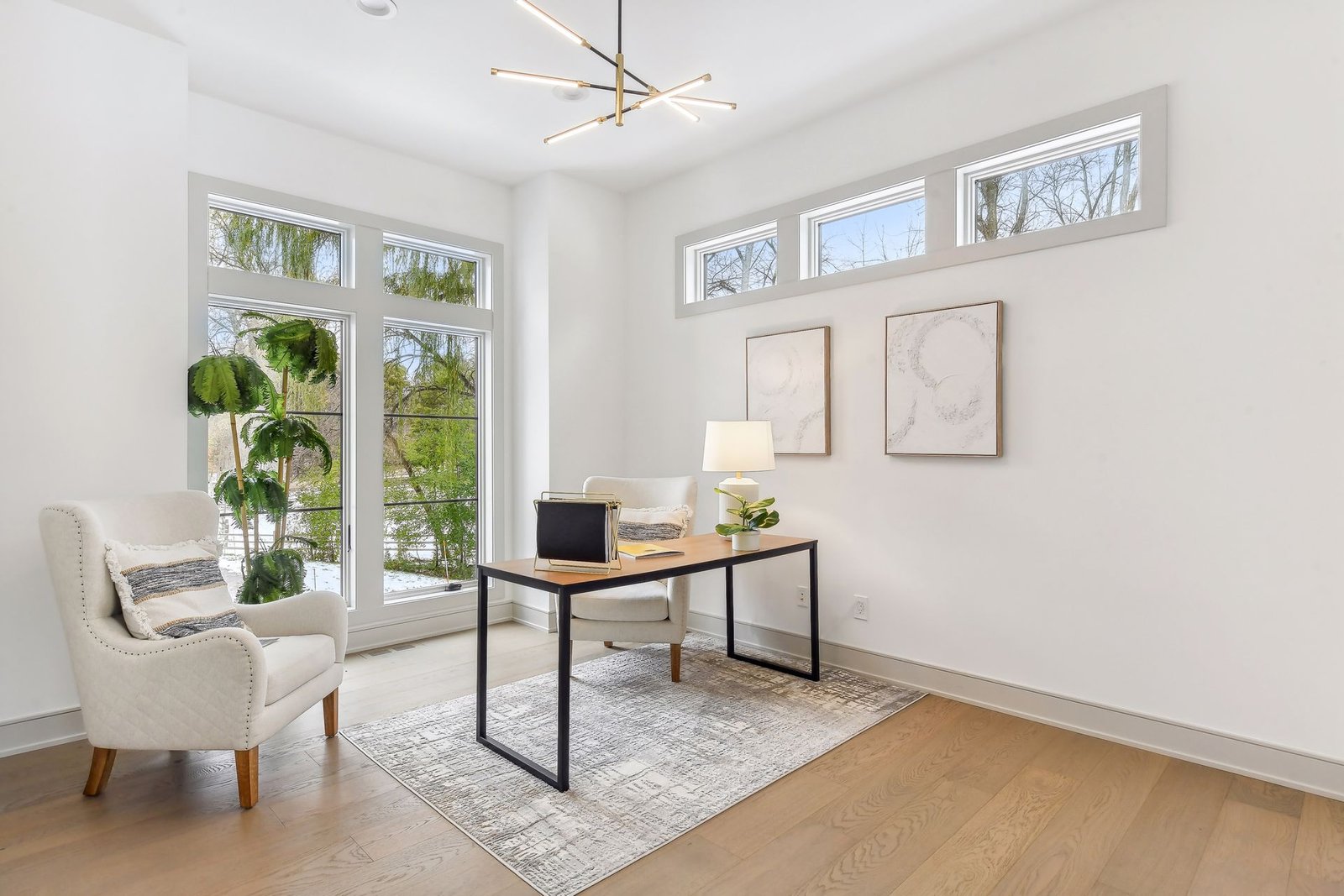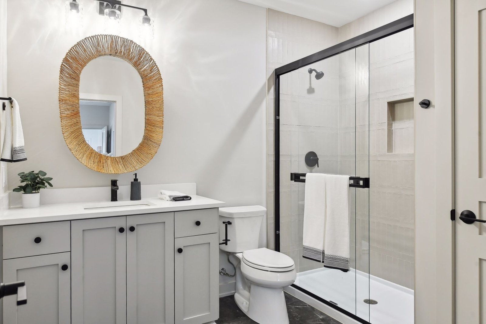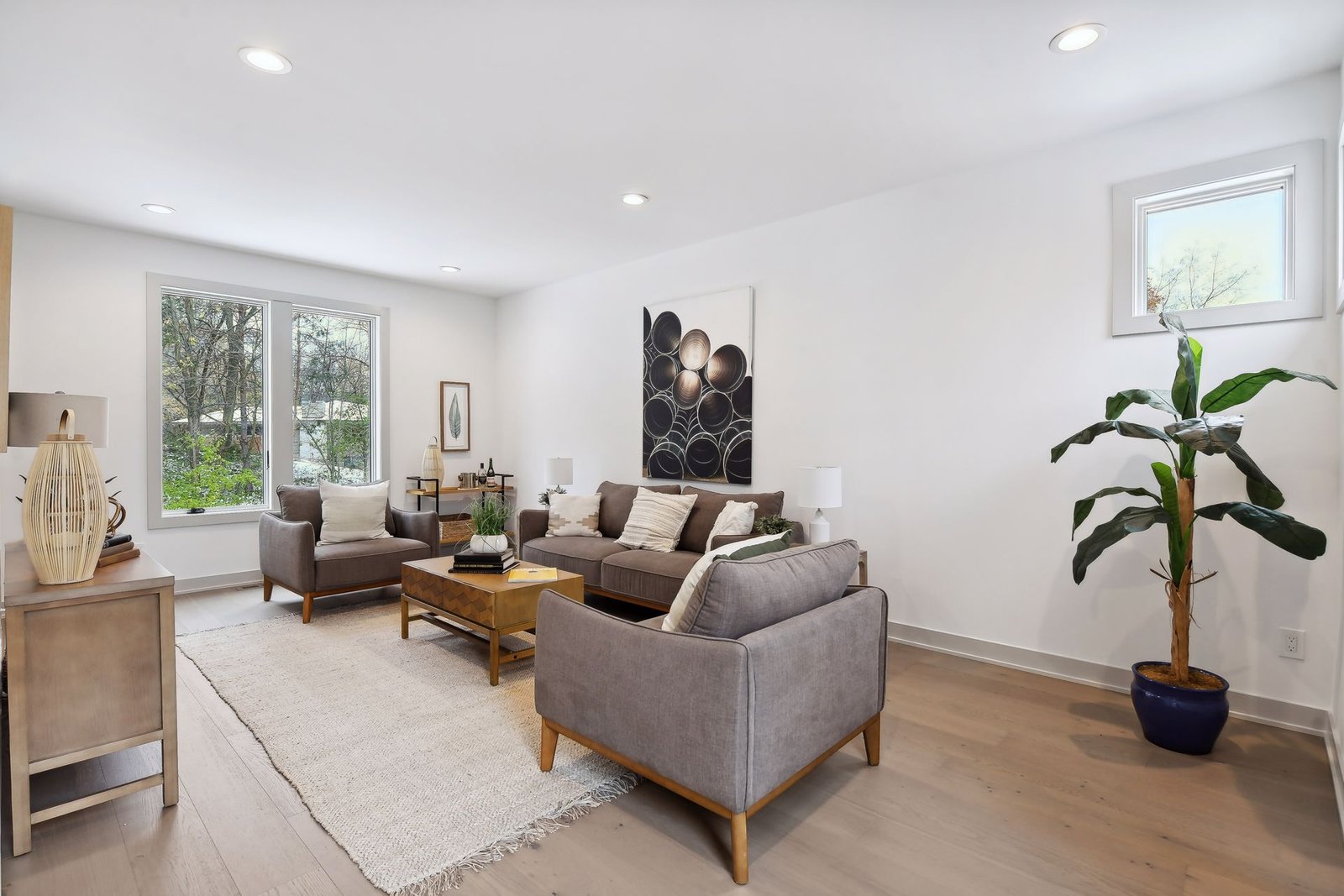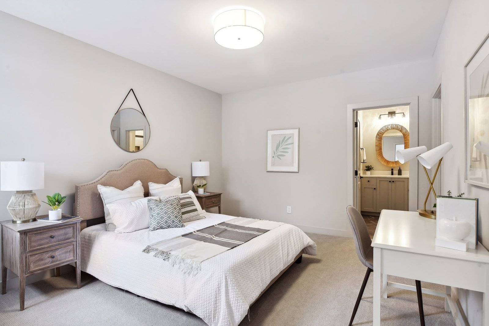 The lower level includes a bar area and a guest room with an en-suite bathroom, ensuring comfort and privacy for visitors. Additionally, there is a dedicated workout space and a spacious lower-level family room, ideal for relaxation and family gatherings.