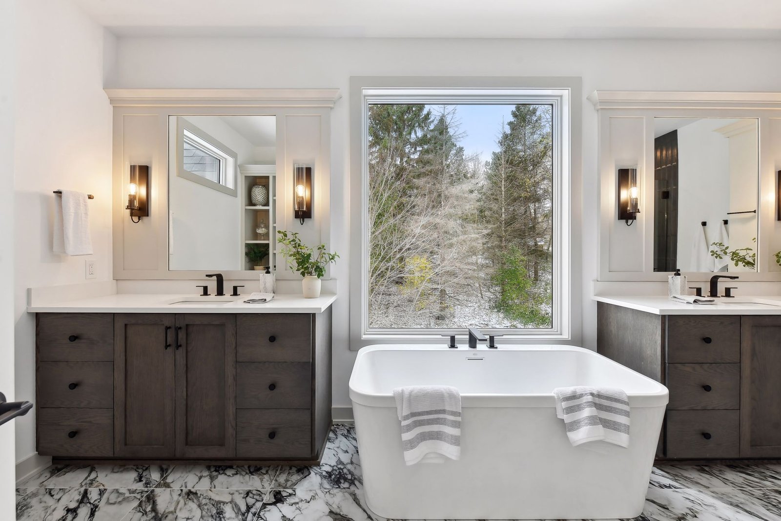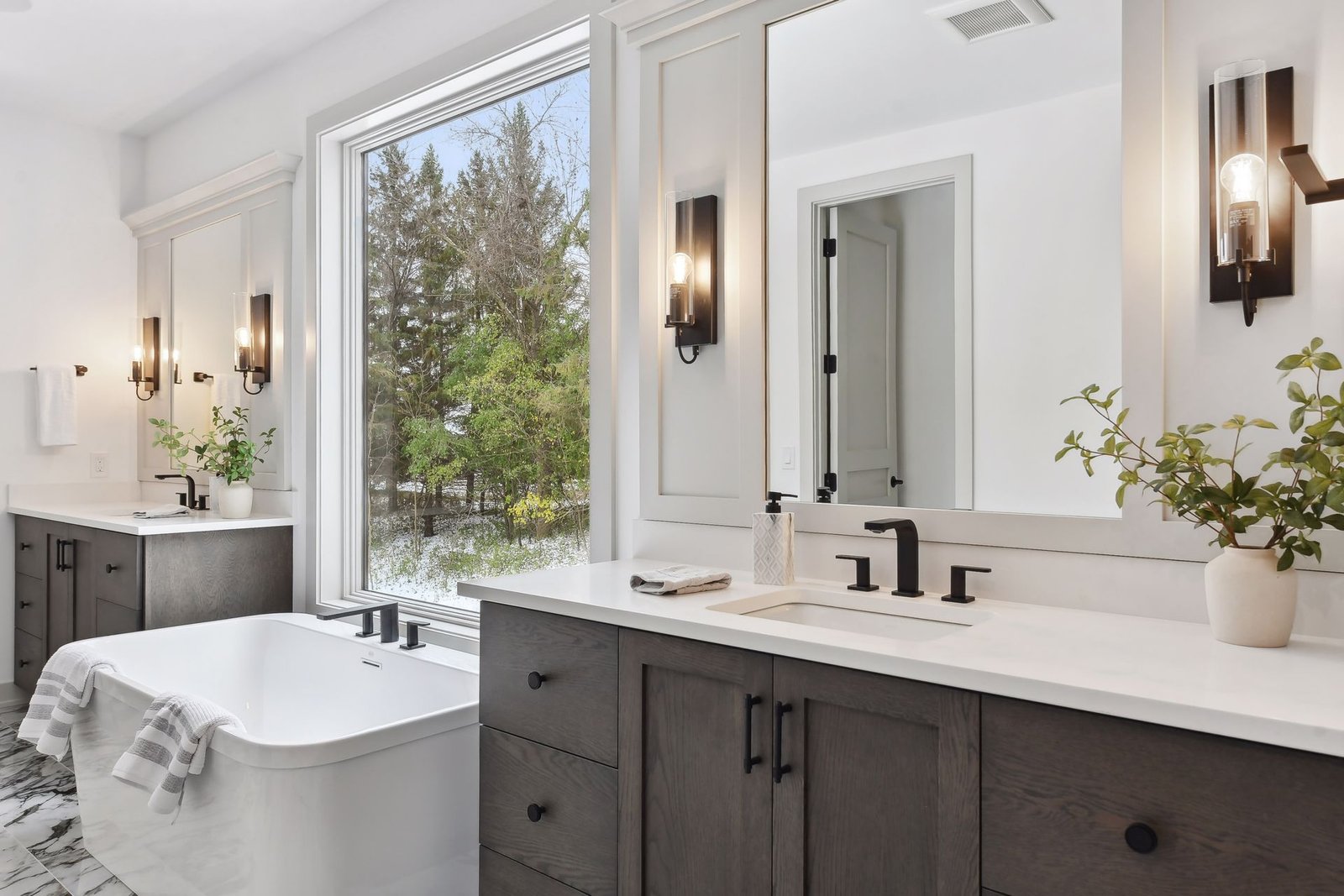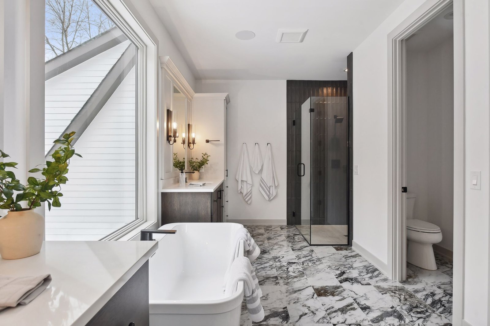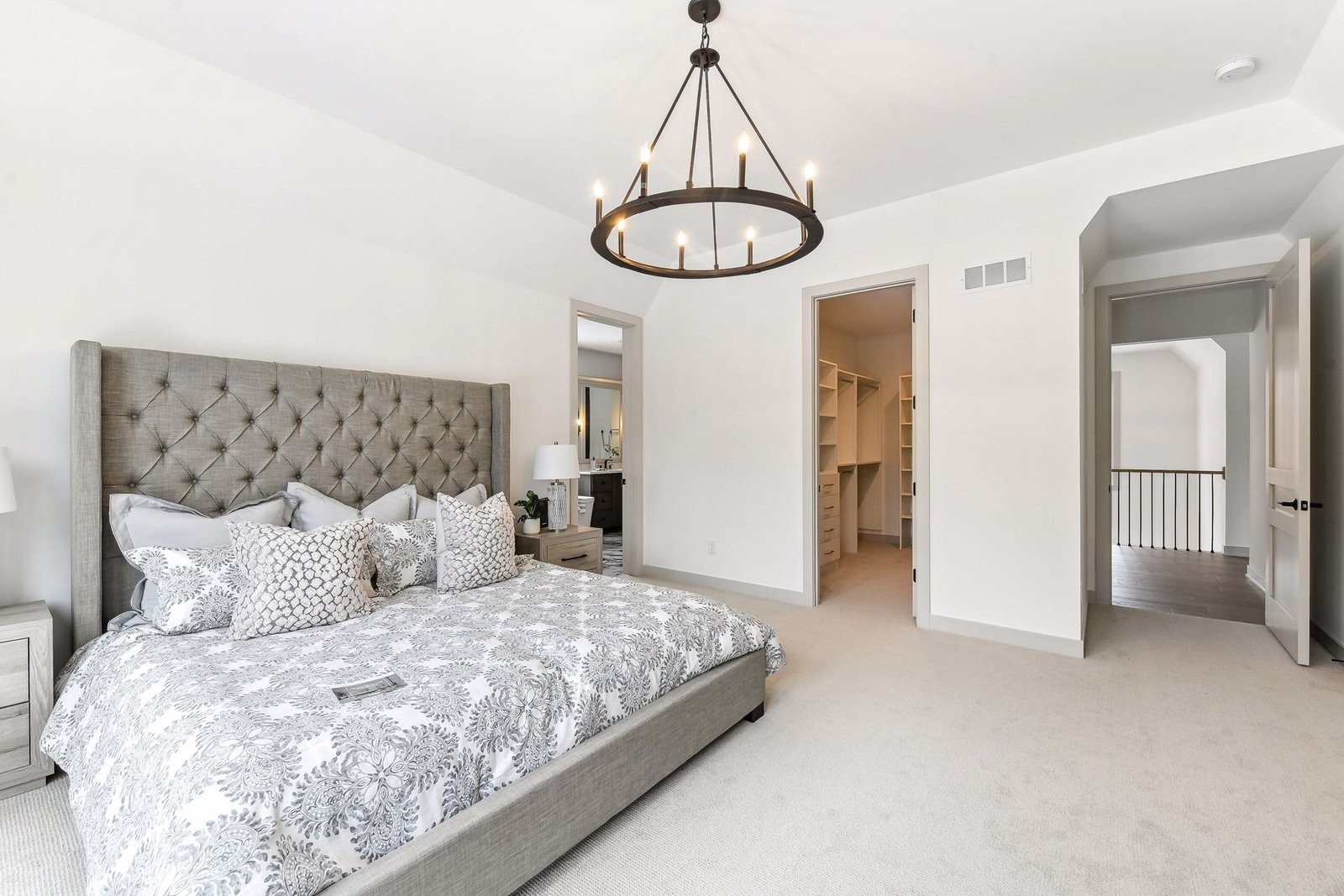 The expansive master bathroom offers ultimate luxury. It features his and her vanities and a large soaking bath. Upstairs, a versatile loft space with a closet provides ample room for a game room, play area, or a cozy nook for sleepovers and fun activities for the kids.