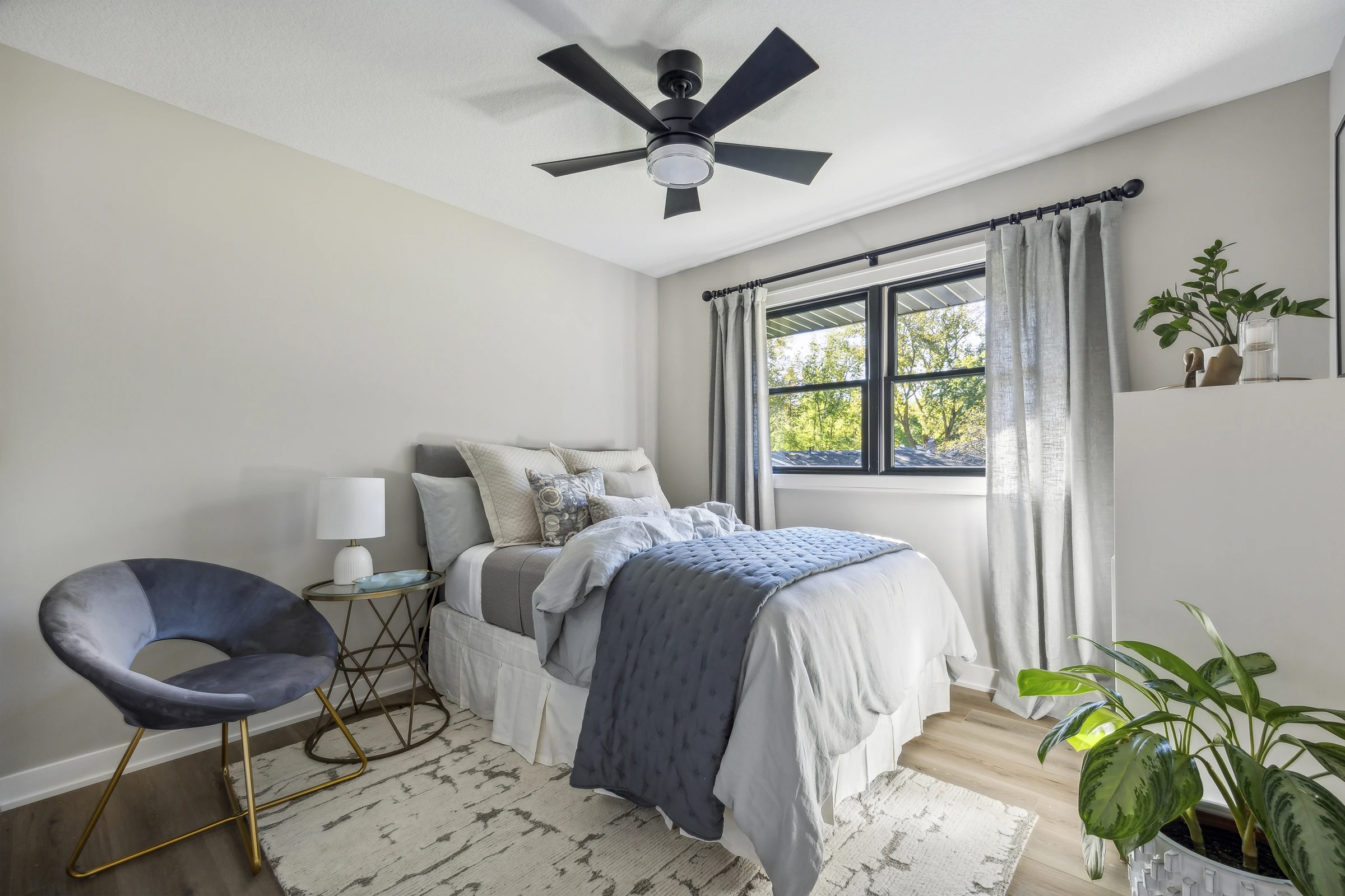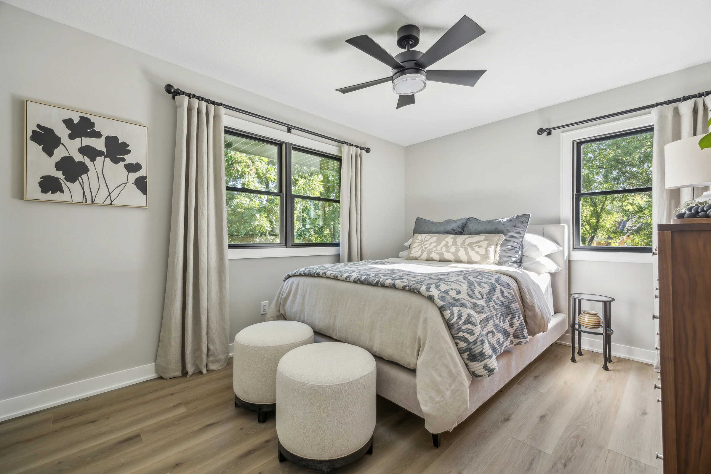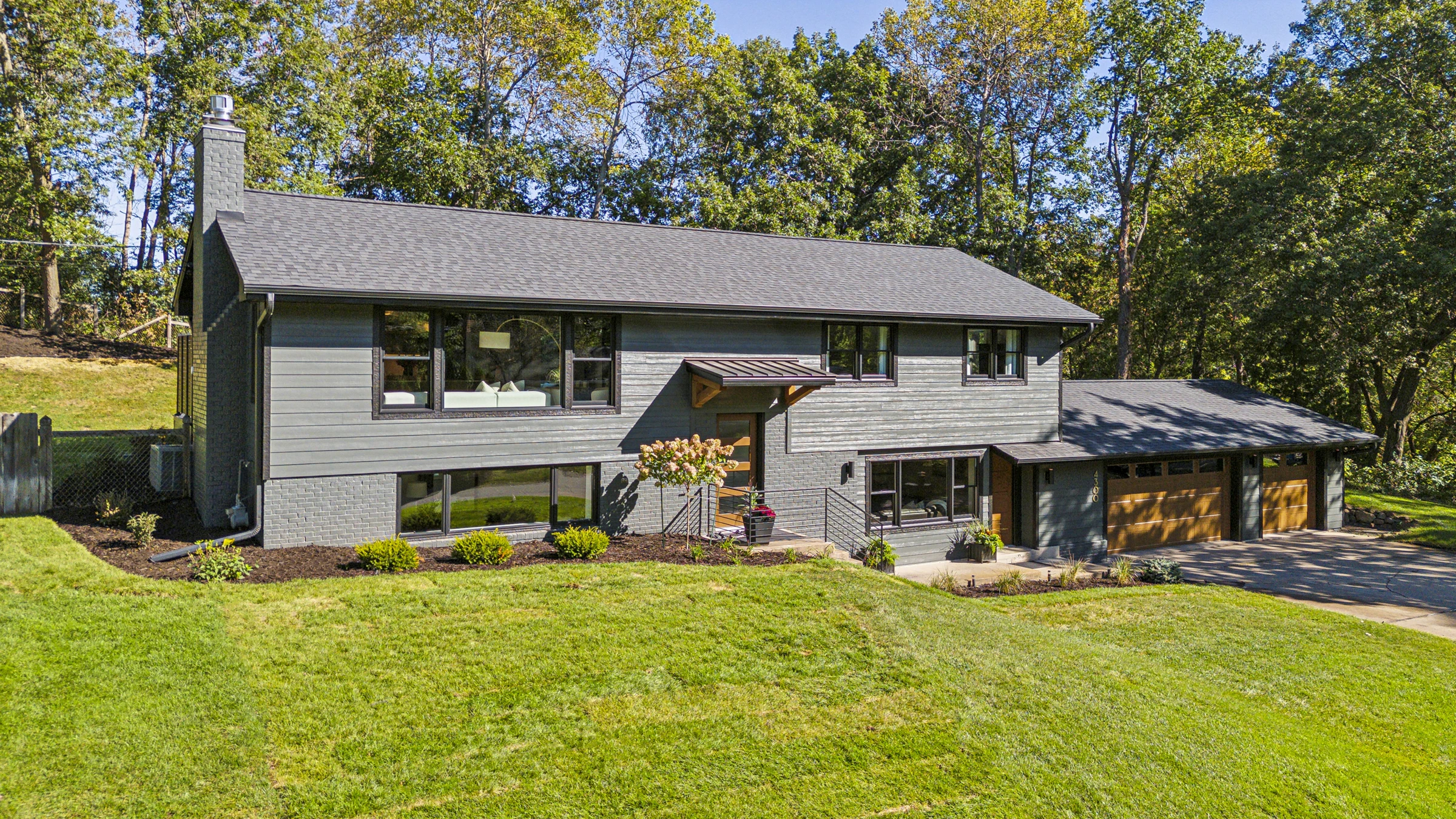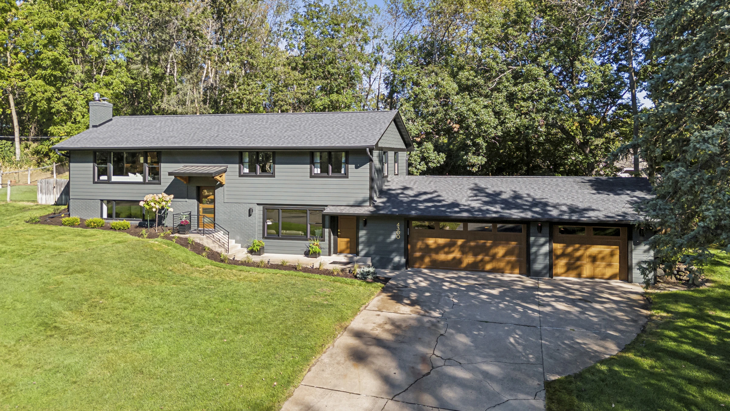 On the exterior, we gave the home a modern makeover, transitioning from a traditional facade to a sleek, contemporary look. The fresh, sophisticated color palette, paired with new contemporary garage doors, elevates the curb appeal. Andersen Windows 400 Series were installed throughout the home, maximizing natural light and blending the indoor and outdoor spaces seamlessly.