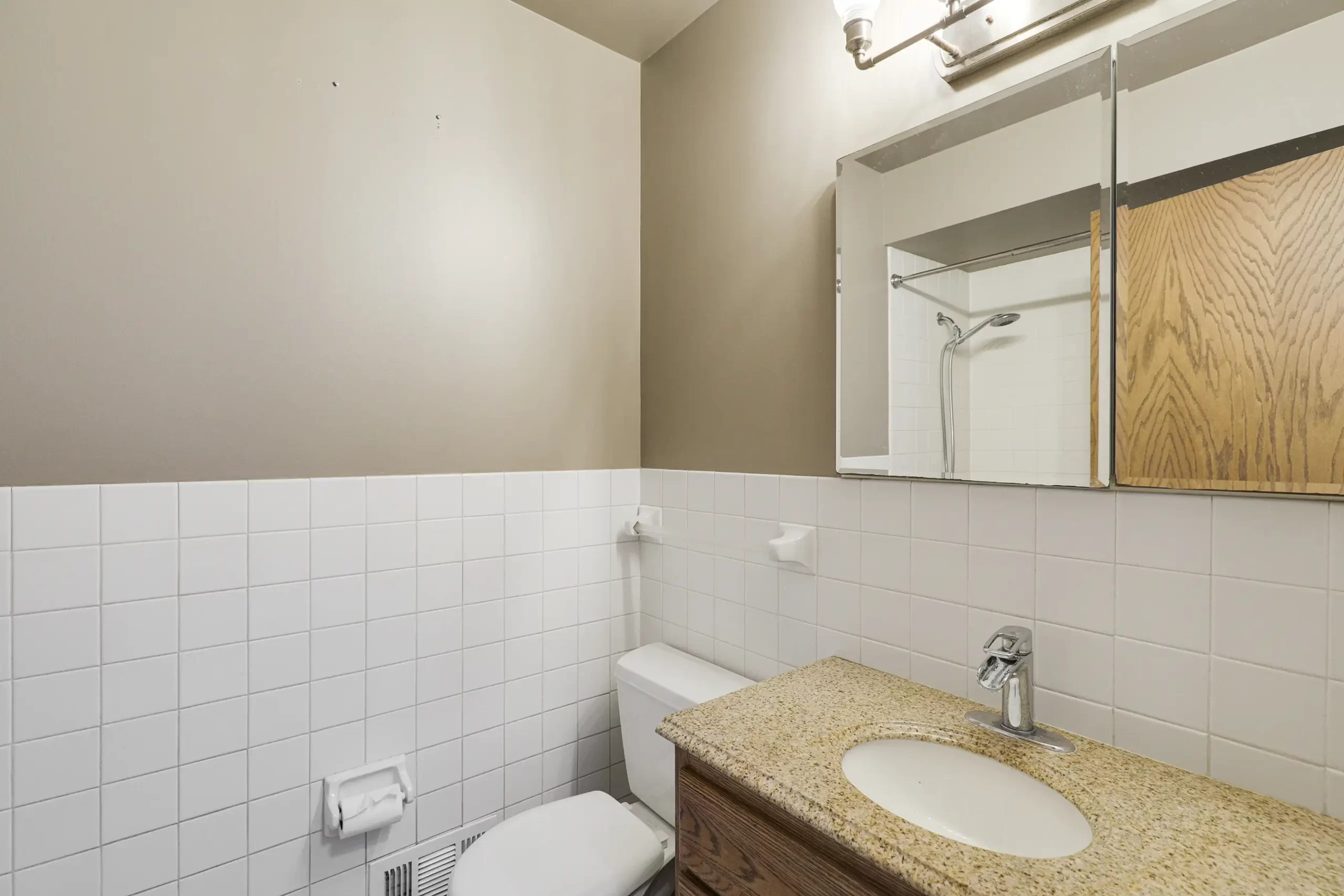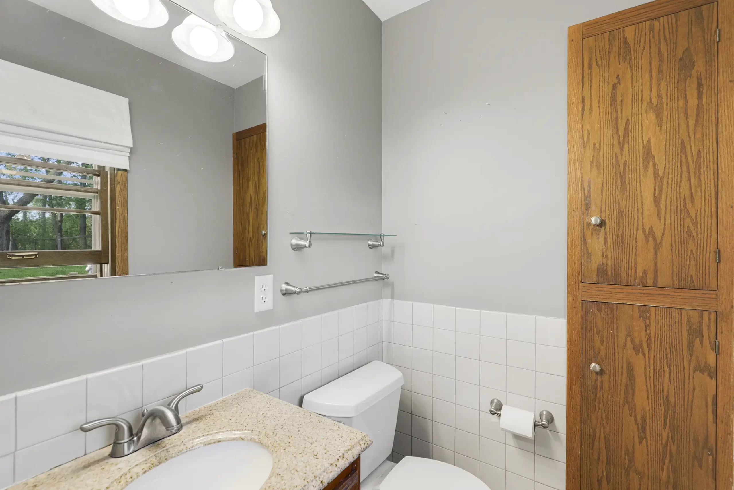 The centerpiece of this project was the complete transformation of the main level. By removing a load-bearing wall, we opened up the kitchen, living, and dining areas, allowing for a seamless flow between the spaces. The ceiling was vaulted by removing the roof and trusses, creating a grand, airy environment. The kitchen renovation is a true highlight, featuring a Wolf 48″ Gas Range with 6 Burners and Infrared Griddle, part of a high-end pro-series appliance package that delivers both functionality and style. The space also includes a multi-purpose bar service area and direct access to the new deck, making it perfect for hosting and entertaining.