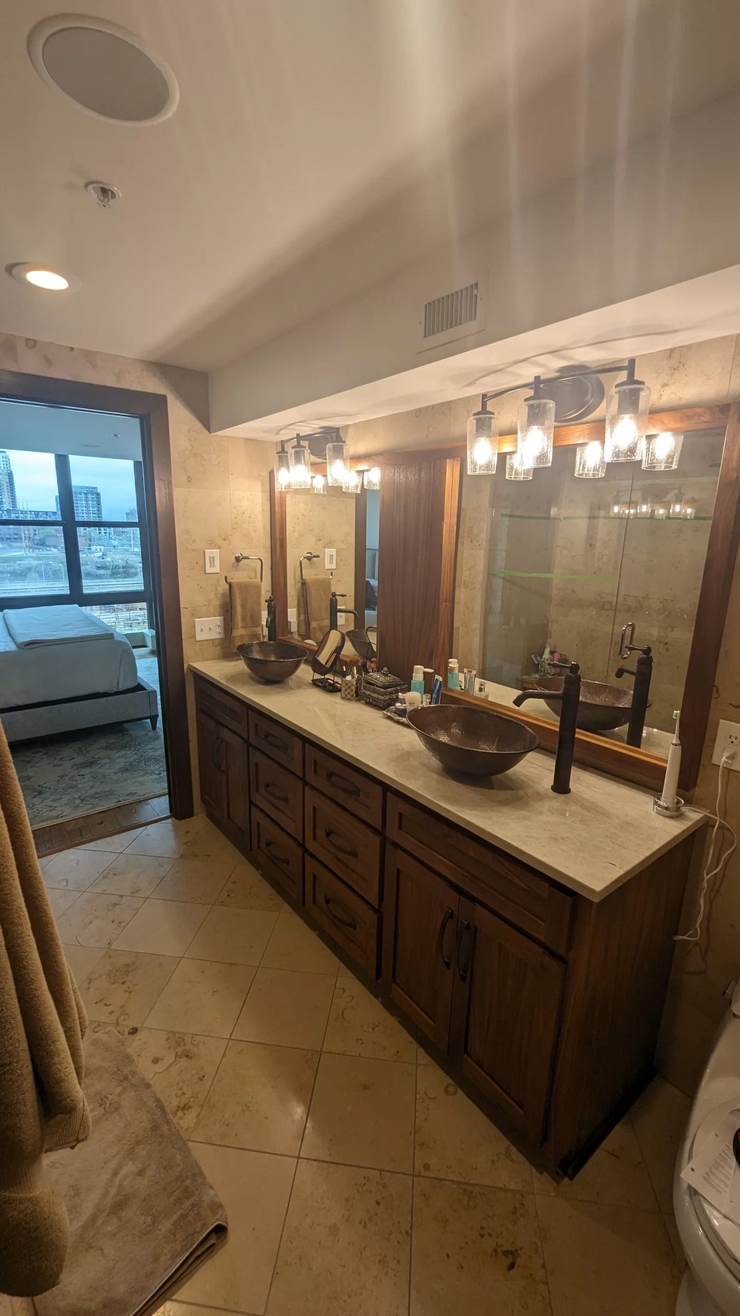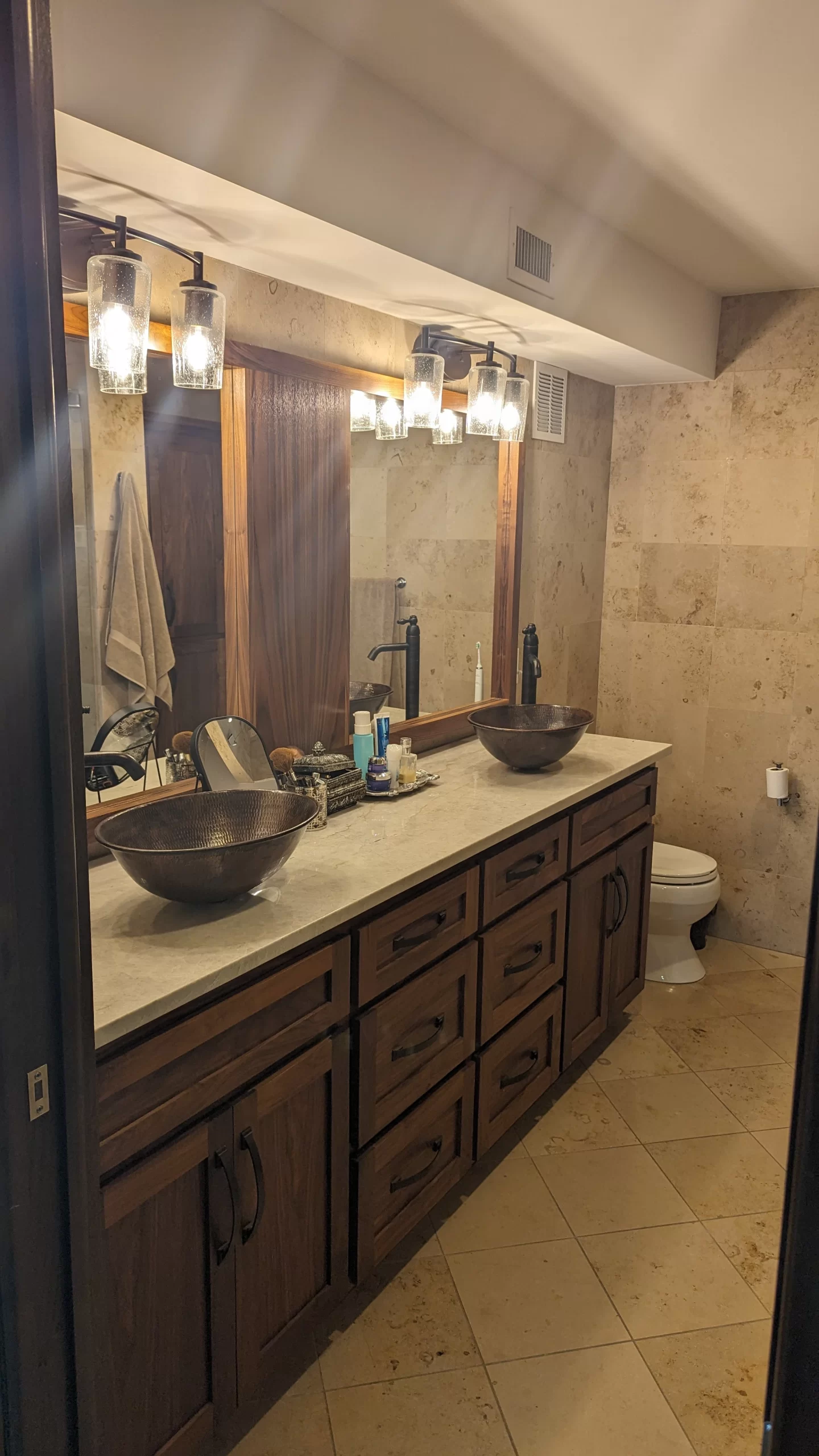 The upper level received a thoughtful redesign to maximize comfort and functionality. We updated the laundry room, children’s bathrooms, bedrooms, and the Owners’ suite with a balance of classic finishes and modern features. The laundry room now includes custom cabinetry and a beautiful chandelier, adding a touch of elegance to the space.