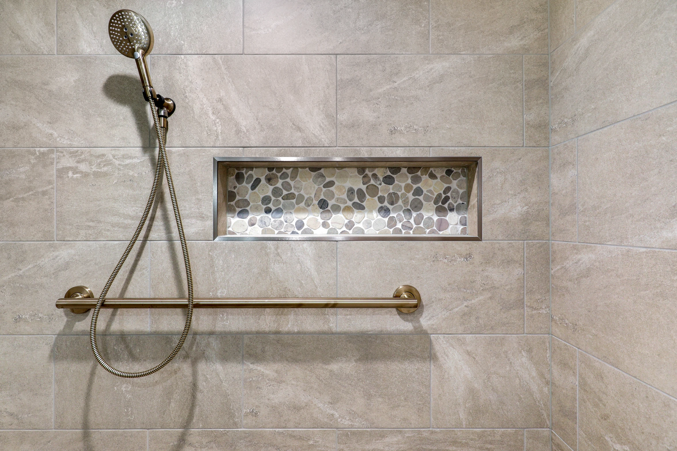 The bathroom was renovated with modern fixtures, stylish tiles, and a spacious layout. Its design seamlessly integrates with the overall theme of the lower level, completing the transformation.