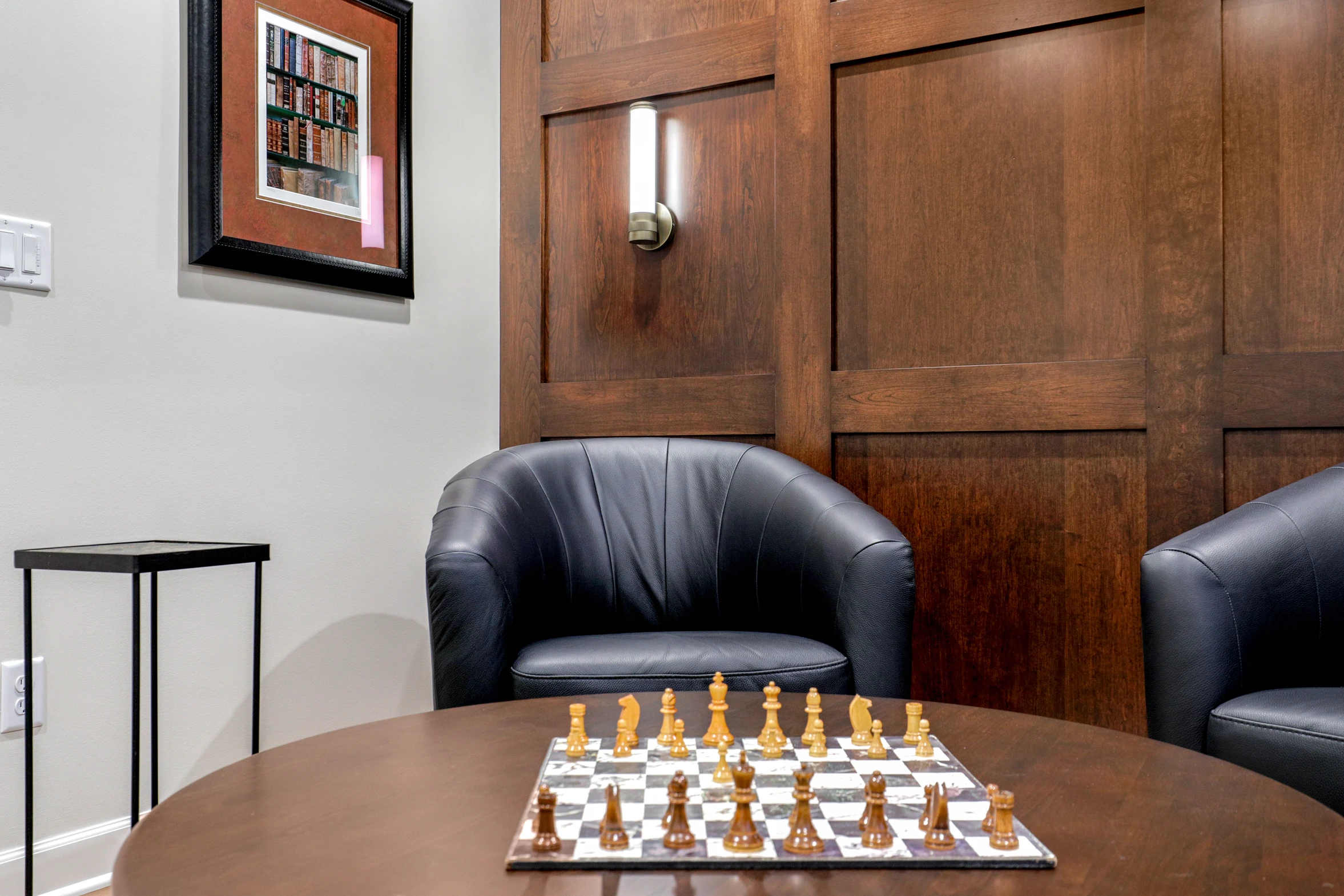 The game room was designed with fun in mind, offering options for pool, darts, and board games. A full bath nearby ensures convenience for guests. Additionally, the bedroom doubles as a smoke lounge, complete with a state-of-the-art ventilation system. This ensures that cigar enthusiasts can enjoy their pastime without compromising air quality. The smoke lounge’s sophisticated decor, plush seating, and dedicated ventilation create an inviting retreat.